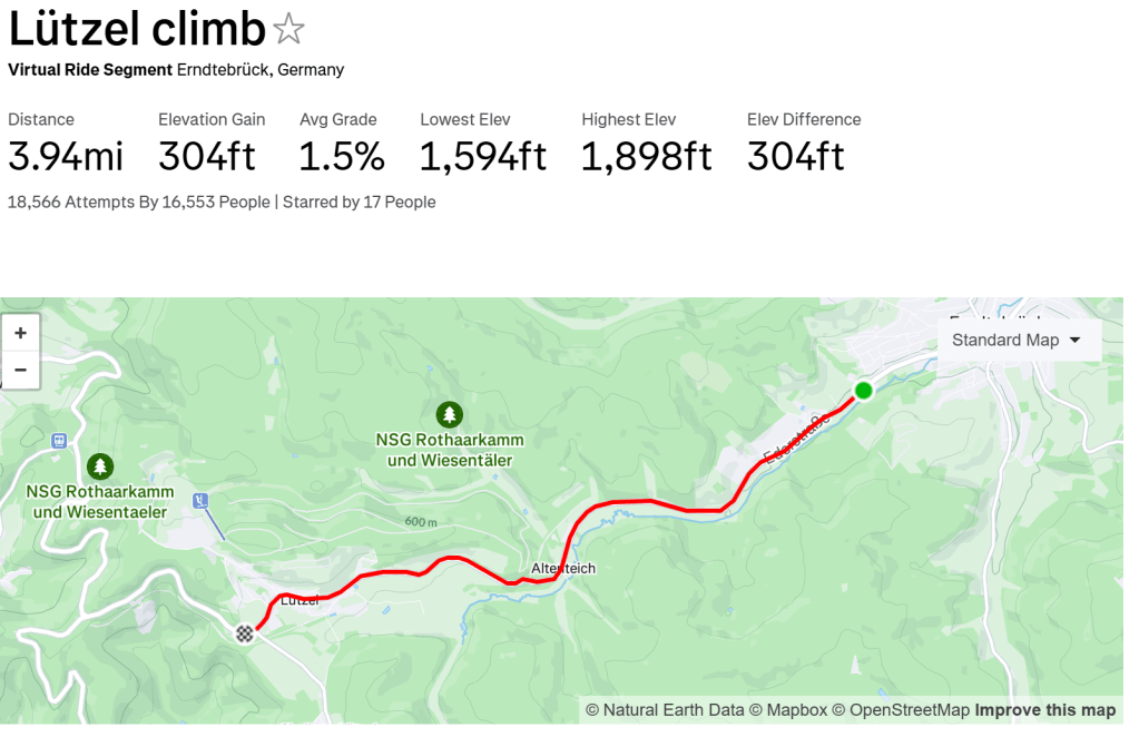 The STRAVA virtual segment is called the Lützel climb in Erndtebrück, Germany.
