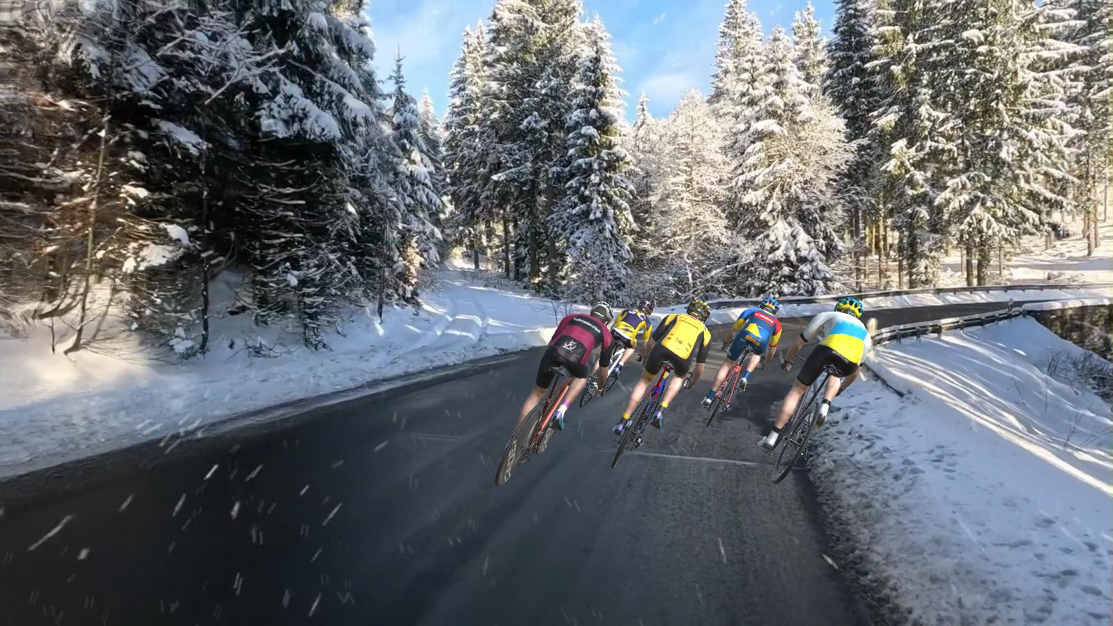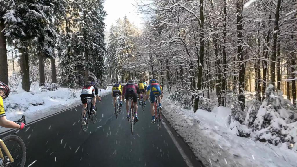 This short distance course measures 20.26 miles. The course is downhill at the beginning reaching speeds of 40 mph without much effort. The scenery is classic Germany in the Winter with snow falling.
