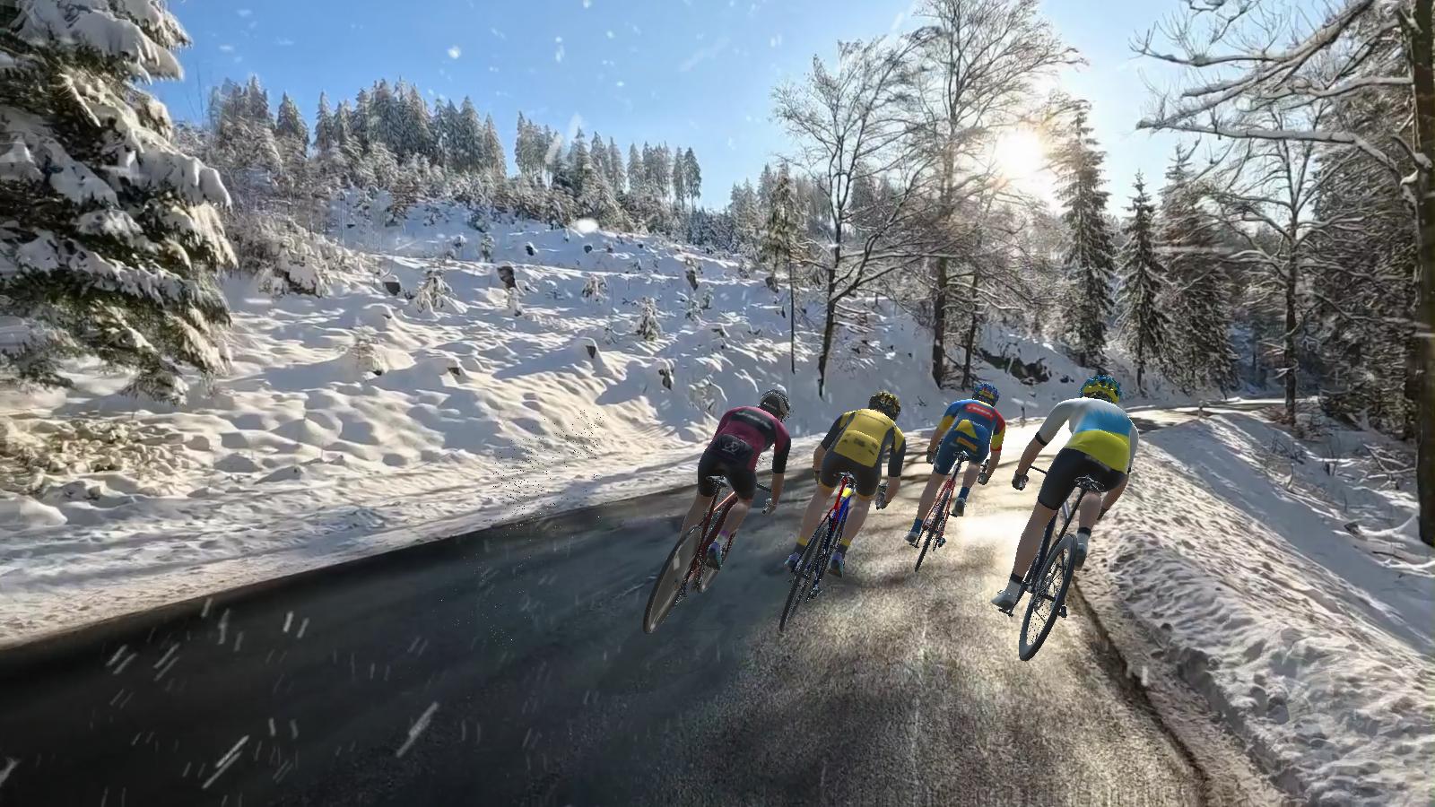 This is a Christmas course that came out on October 31, 2024 with snowmen peppered along the course and snowing. There is lots of sunshine and you get the feeling of riding in the snow on a winters day. I’m curious if the snowmen and Christmas theme will disappear after the holidays?