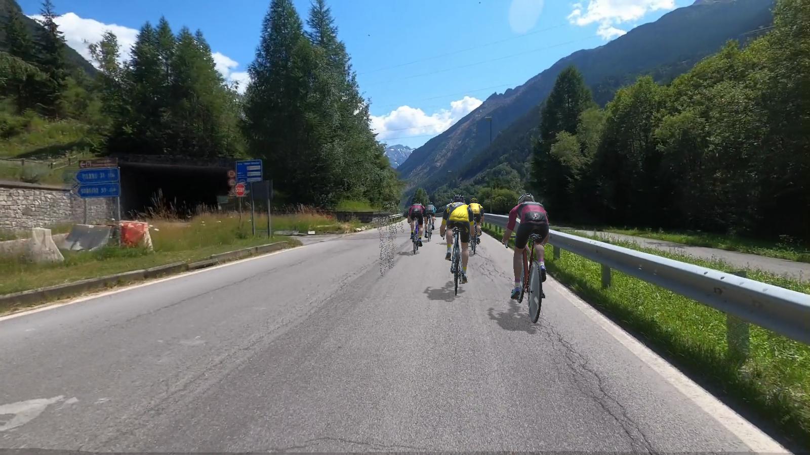 This course is a middle distance course of 22 miles with an average gradient of 1% with a maximum of 6%, with an elevation of only 312 feet. The course was added to ROUVY on October 08, 2021. The course if fast and mainly downhill with a small climb at the end of the ride to another shorter downhill finish. The sites are amazing on this course going through a valley from Bormio to Tirano.