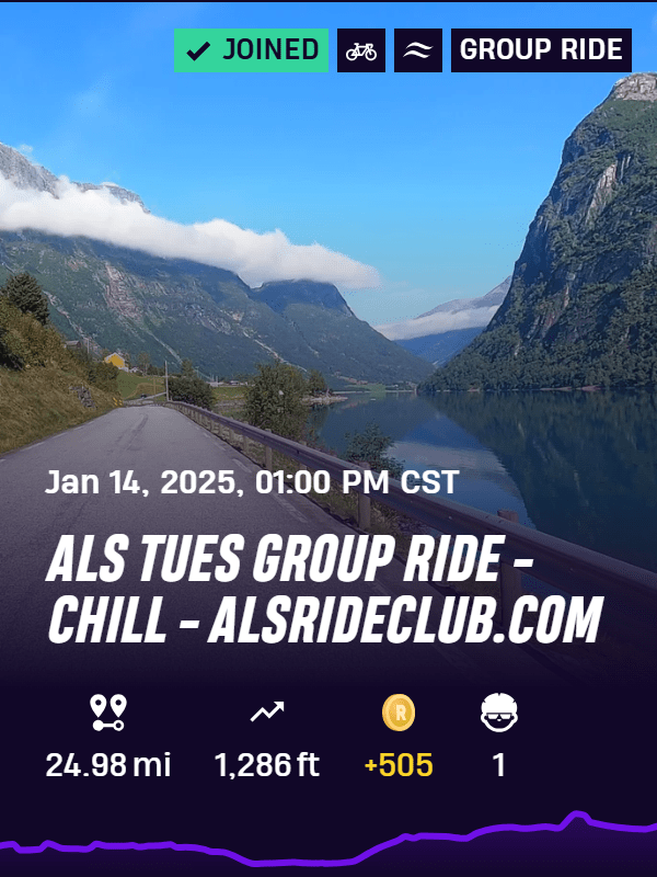 We had over 30 RIDERS! The course had just a few little climbs and the longer LOEN climb near the end of the course. This was a scheduled CHILL ride (2.5 – 3.5 watts/kg). We kept the front group mainly at that pace with a few surges on the up and downhills near the end of the course.