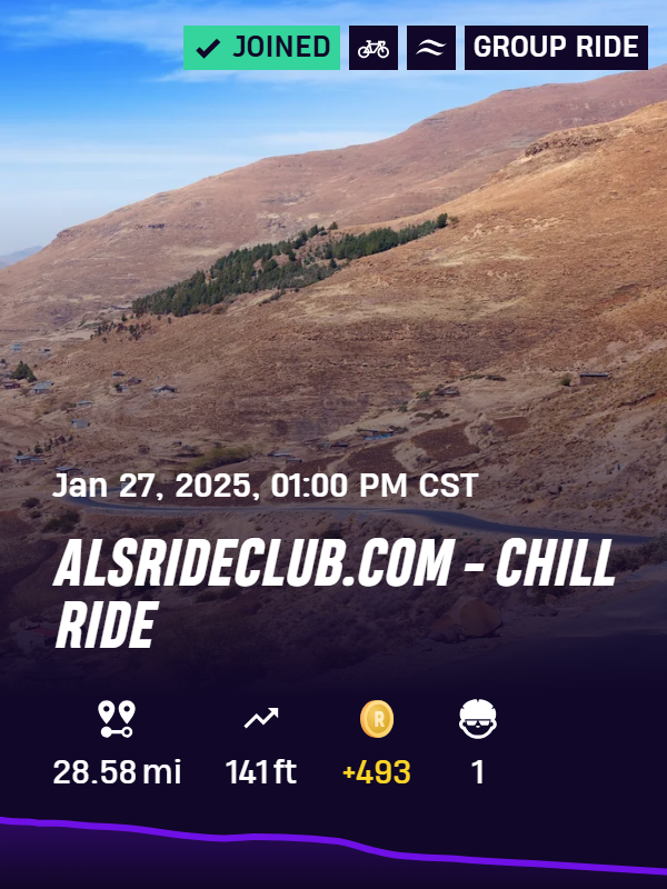 This was a Chill ride, and it got intense at times, but I managed to keep my watts/kg under 3.0. The ride was relatively flat with some mild rolling hills. There was a sprint at the finish today. Thanks to everyone who participated today!
