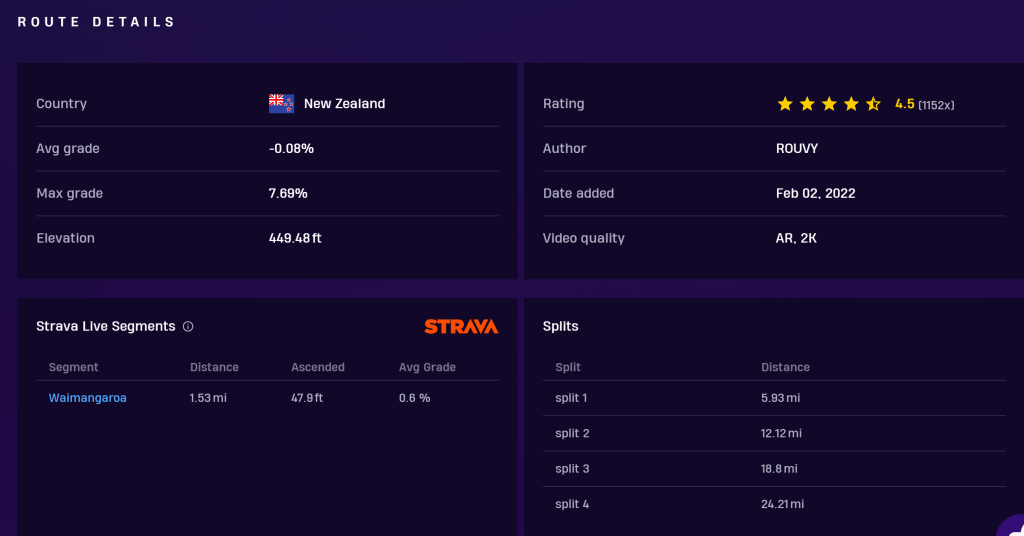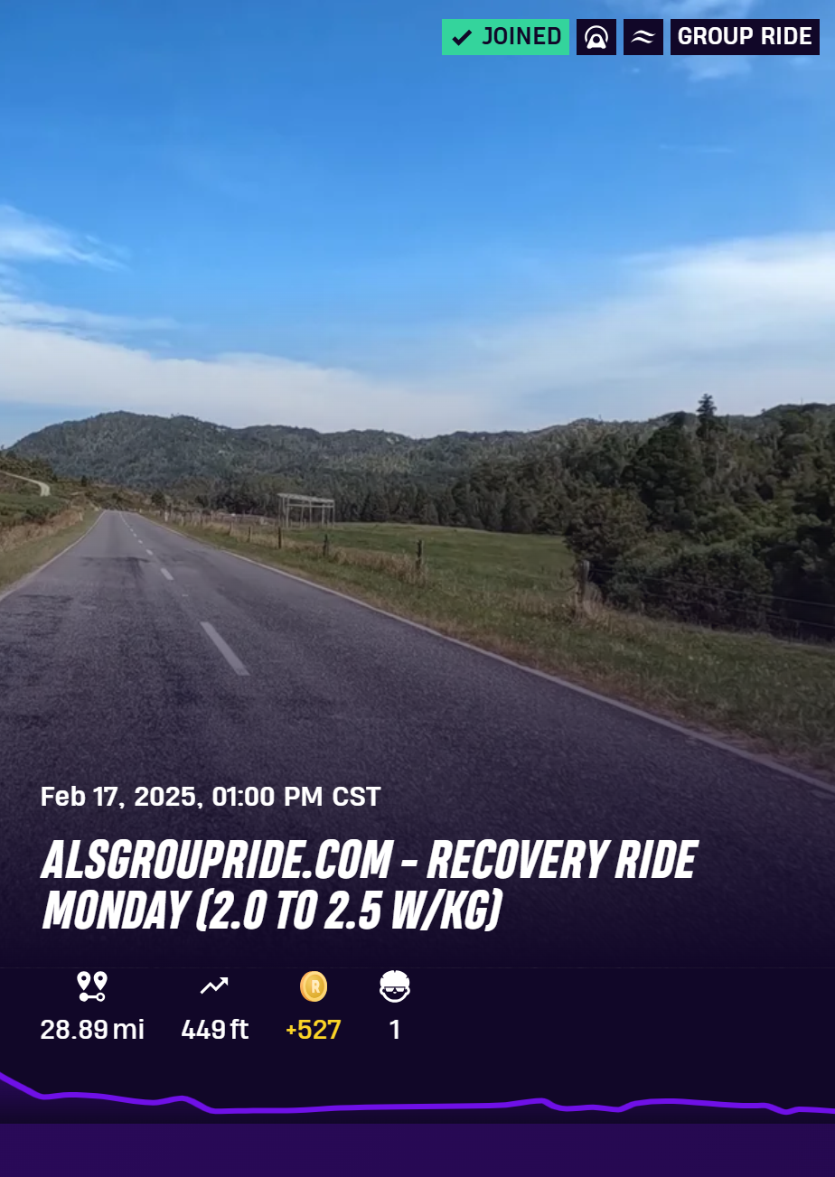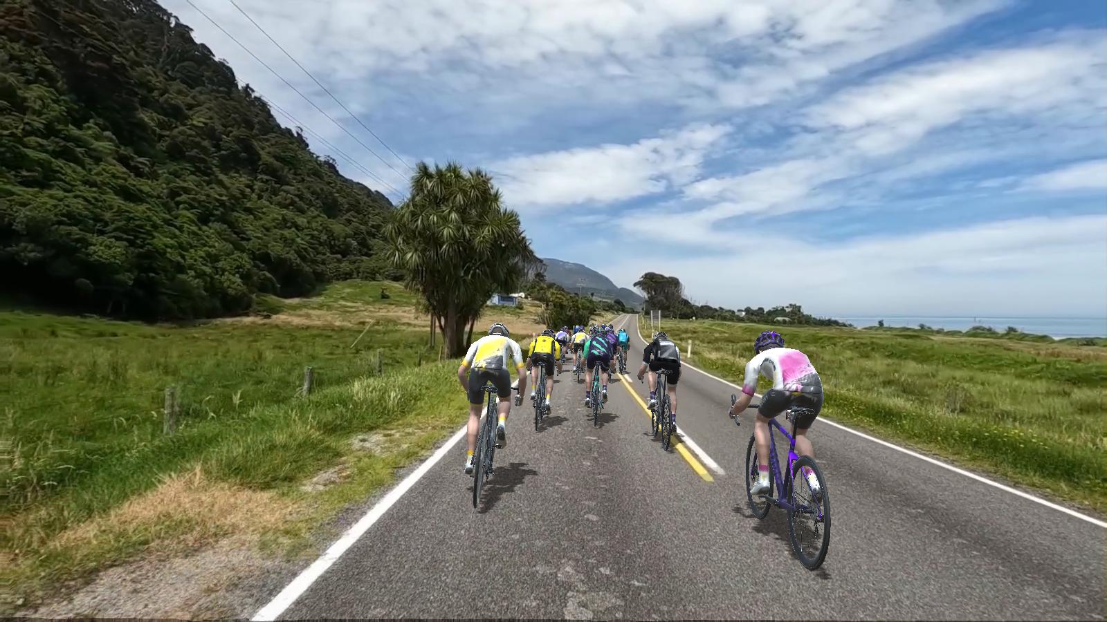 RIDE RECAP: Today, we rode along the rolling, scenic course of Karamea, New Zealand. This was a beautiful rolling course, mainly downhill, so ideal for a recovery ride. It was enjoyable riding with our regular group of riders. We had about 94 people signed up for the ride! We kept the pace very steady at arounc 2.0 w/kg with some power going up the hills. Thanks again to everyone who participated today!