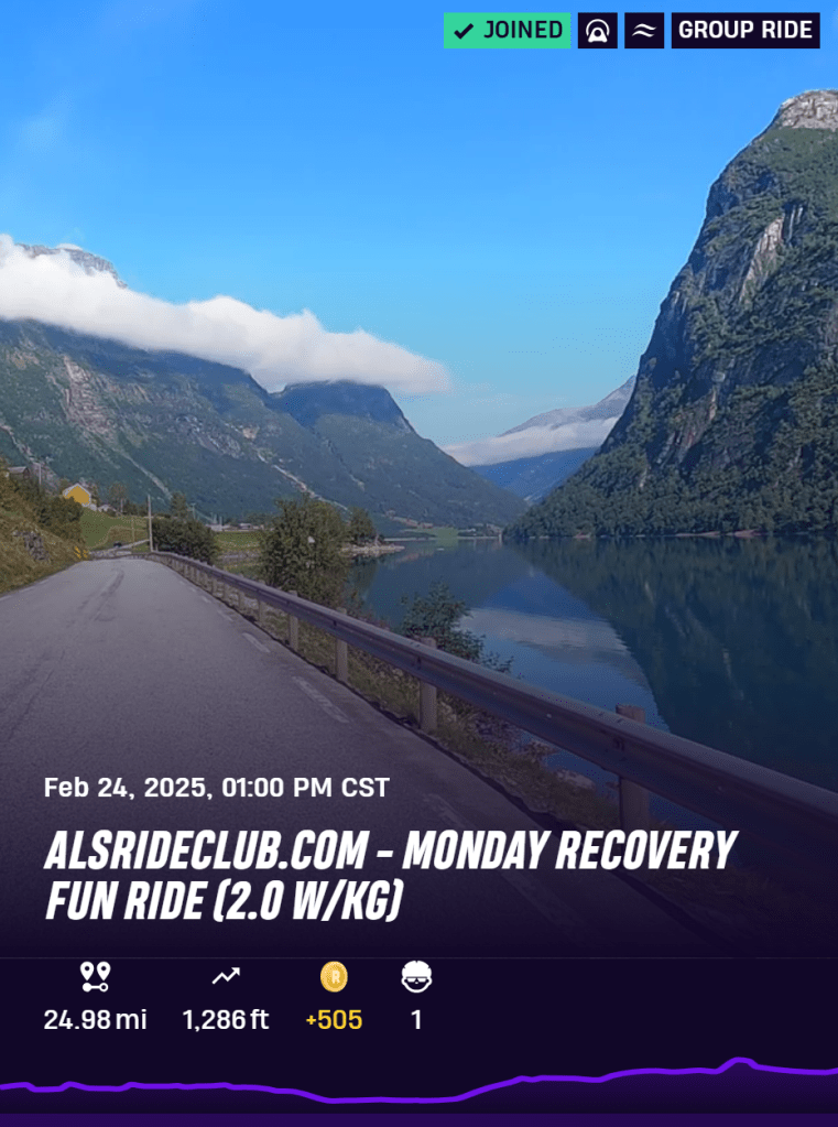 We had over 88 RIDERS scheduled! The course had just a few little climbs and the longer LOEN climb near the end of the course. This was a scheduled CHILL ride (2.5 – 3.5 watts/kg). We kept the front group mainly at that pace with a few surges on the up and downhills near the end of the course.